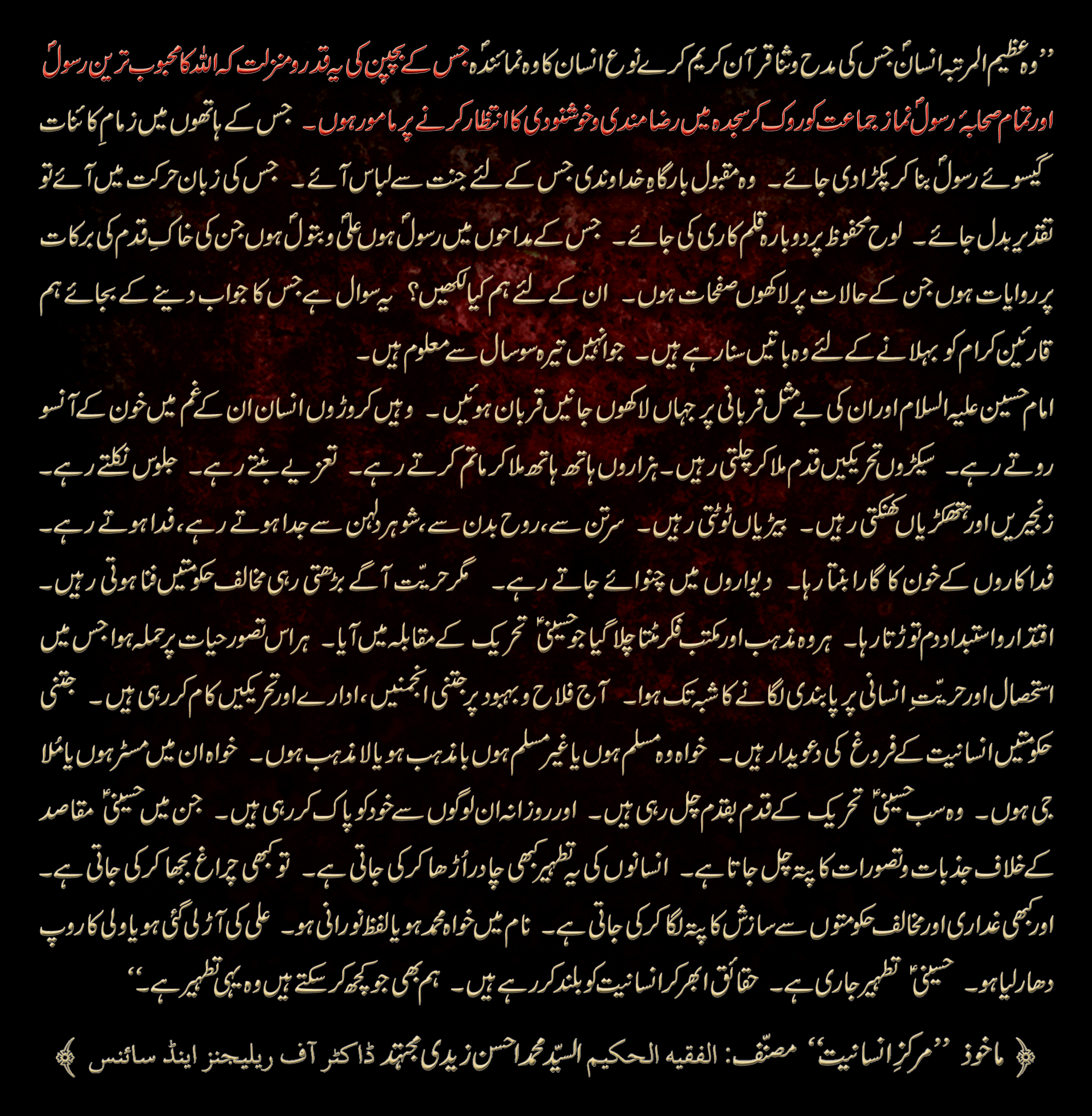 by: Al-Faqih Al-Hakeem S. Muhammad Ahsan Zaidi Mujtahid, Dr. of Religions and Science